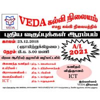 அது மட்டுமன்றி VEDA கல்வி நிலையத்தில் பல பிரபல முன்னணி ஆசிரியர்களினைக் கொண்ட உயர்தரத்திற்கான கணித, விஞ்ஞான பிரிவுகளும் தகவல் தொடர்பாடல் தொழில்நுட்ப பாடமும் ஆரம்பிக்கப்பட்டு வெற்றிகரமாகச் செயற்பட்டு வருவது VEDA கல்வி நிலைய வளர்ச்சியினை எடுத்துக் காட்டுகின்றது.