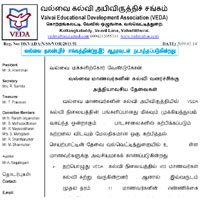 வல்வை நகரில் யுத்தகாலத்தில் இடம்பெற்ற அசாதாரண சூழ்நிலை காரணமாகவும் பல்வேறுபட்ட இடப்பெயர்வுகளினாலும் மிகவும் பின்தங்கிய நிலையில் காணப்பட்ட வல்வை மாணவர்களின் கல்வி நிலையினை சீர்தூக்கி ஓர் உன்னத வளர்ச்சிப்போக்கினை எற்படுத்தும் நோக்கிலே பல்வேறுபட்ட இடர்பாடுகளுக்கு மத்தியில் வல்வை மக்களால் VEDA கல்வி நிலையமானது ஆரம்பிக்கப்பட்டது யாவரும் அறிந்ததே. ஆரம்பத்தில் மிகவும் குறைவான மாணவர்களுடன் ஆரம்பிக்கப்பட்ட VEDA கல்வி நிலையமானது படிப்படியாக வளர்ச்சிப் போக்கினை எய்தி இன்று 455 மாணவர்களைக் கொண்ட ஒரு கல்வி நிலையமாக வல்வை மண்ணில் மிளிர்கின்றது.